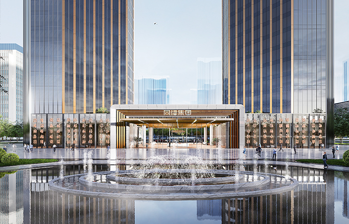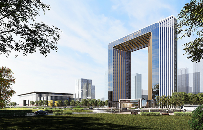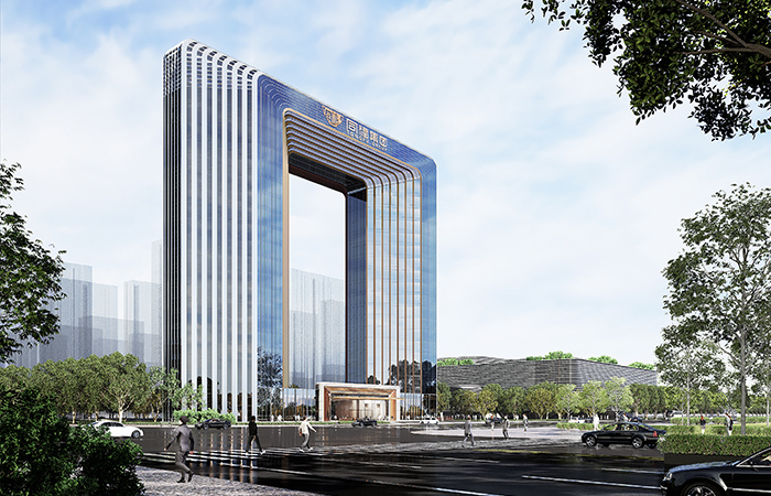 項(xiàng)目位于正定新區(qū)“四軸五心”的中央商務(wù)辦公區(qū)域內(nèi),隆興路商務(wù)軸北側(cè),由兩棟塔樓組成,功能為展廳、會(huì)議和辦公,總建筑面積5.8萬 m2,其中地上建筑面積4.2萬 m2。兩棟塔樓均為地下一層,地上21層,裙房2層,建筑高度100.85m,結(jié)構(gòu)高度86.700m。兩棟塔樓平面為八邊形,兩塔樓最近點(diǎn)距離約36.6m,最遠(yuǎn)點(diǎn)距離約108.1m。建筑頂部設(shè)置八邊形造型和空中連廊與塔樓連為一體,“大道至簡(jiǎn),天下大同”,形成大底盤雙塔連體建筑。