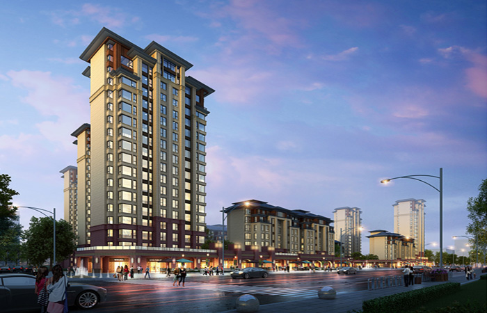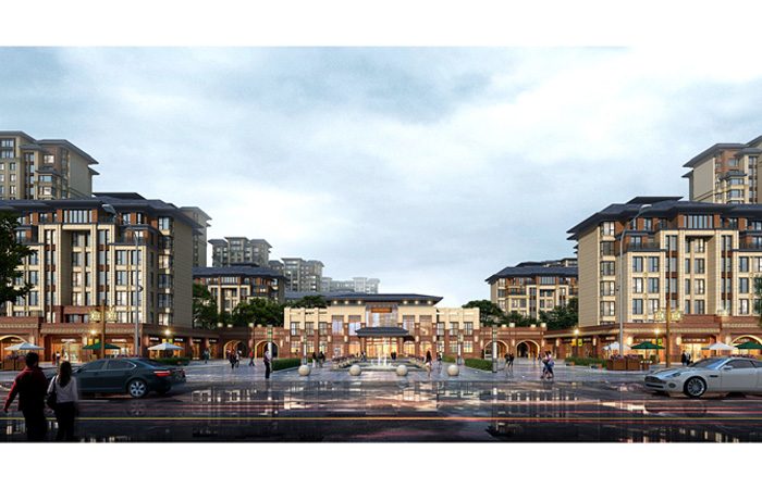 借鑒中國(guó)傳統(tǒng)建筑“宮”“坊”“園”的關(guān)系?!皩m”強(qiáng)調(diào)對(duì)稱、富于儀式感的空間序列,“院”強(qiáng)調(diào)宜人的空間尺度及均衡與中心圍合感,“里坊制”、“廂坊制”強(qiáng)調(diào)內(nèi)部封閉,周正嚴(yán)謹(jǐn),布局靈活的空間格局;再加上借鑒蘇州園林等傳統(tǒng)中式園林,強(qiáng)調(diào)體驗(yàn)悠然自得、空間曲徑通幽的生活意境的“園”,形成古城新邸的完美演繹。