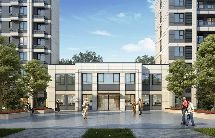 建筑屋頂進(jìn)收分設(shè)計(jì),柔化頂界面與街道的空間關(guān)系改善單調(diào)的天際線關(guān)系。在建筑屋頂部分進(jìn)行了頂部深化設(shè)計(jì),通過屋面頂部搭框架及格柵。突出本小區(qū)的特色與個(gè)性,同時(shí)也彰顯了都市的勃勃生機(jī)與昂揚(yáng)氣勢。立面以簡潔的橫向線條,精致細(xì)節(jié)的刻畫,簡約大氣而不失細(xì)膩。立面采用橫向線條凸出建筑張力,外立面材料簡約,細(xì)節(jié)精致,簡約現(xiàn)代;多層線條呈現(xiàn)的密檐意向,別具東方韻味。