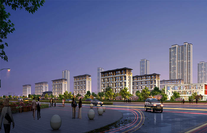 小區(qū)人行主入口與車行口分開設置,人行沿中央主入口景觀軸直接歸家,實現人車分流,保證項目出則繁華,入則靜謐。