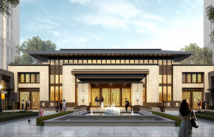 建筑風格為新中式與現在相結合,注重人視尺度,立面顏色主要為米色和褐色,單體設計端莊典雅,簡潔大方。
