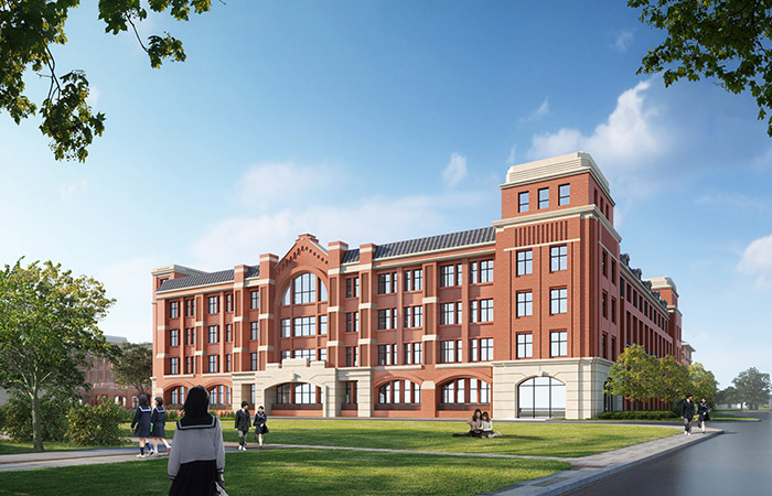 本項目對標國內(nèi)外多所一貫制學(xué)校項目,深度考察,結(jié)合隆堯地處華北大地風(fēng)貌條件,濃縮出以新古典主義為學(xué)?;{(diào),融合現(xiàn)代元素,打造“容貌端莊,理性簡潔”的建筑形式,塑造高品質(zhì)的現(xiàn)代建筑組群形象。