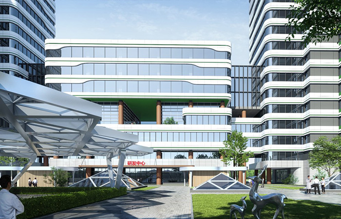 方案從平安醫(yī)院的LOGO展翅的鴿子形象中提取雙翅元素,沿建通街西立面植入兩條雙翅曲線,象征著愛與希望。南立面純凈的白色水平線條相互穿插、底層設(shè)置架空,科研樓中部設(shè)置南北通透的空中花園,同時引入垂直綠化,使整個建筑給人以平靜祥和的心理感受。