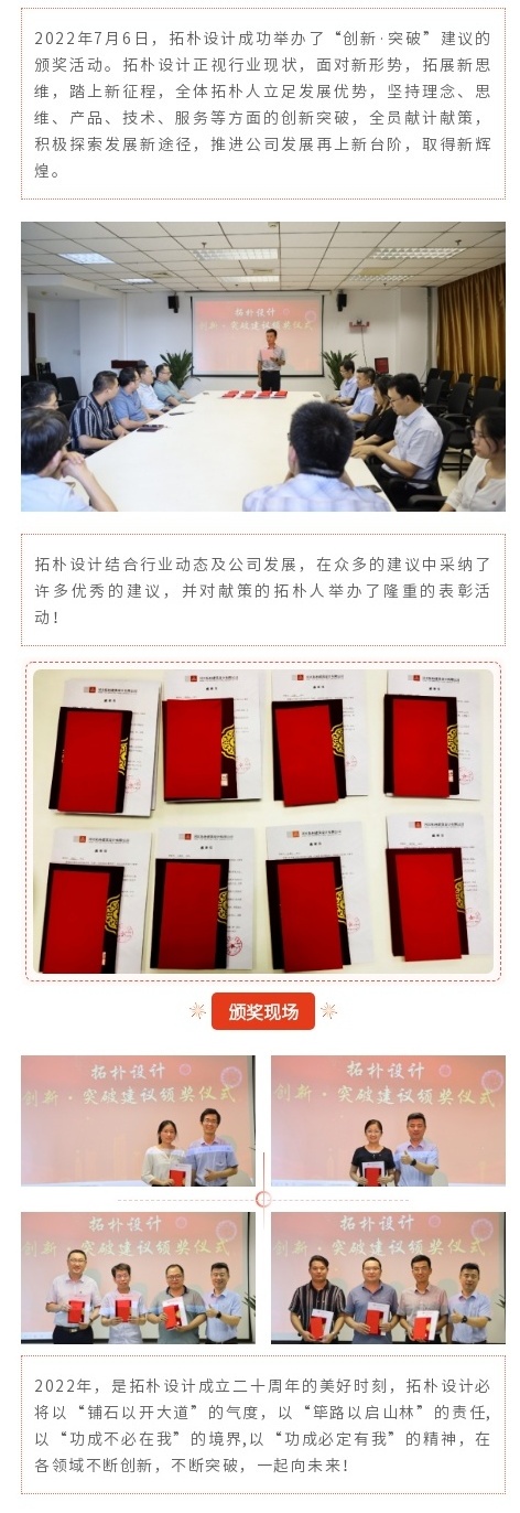 表彰|拓樸設(shè)計成功舉辦“創(chuàng)新·突破”建議頒獎活動