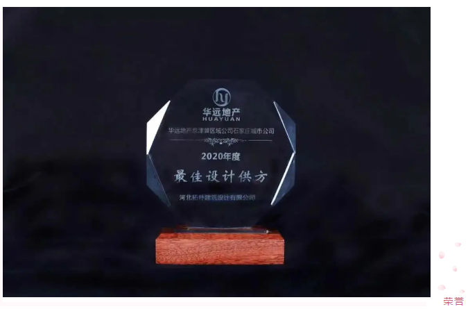 我司榮獲華遠(yuǎn)地產(chǎn)京津冀區(qū)域石家莊城市公司“2020年最佳設(shè)計(jì)供方”獎(jiǎng)項(xiàng)。
