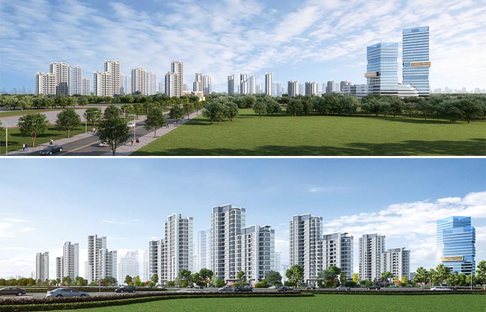 項(xiàng)目總規(guī)劃用地1405畝,包含住宅、商業(yè)、教育、醫(yī)療、公園綠地等13類用地,其中,公建用地規(guī)劃于中心區(qū)域,沿環(huán)城水系兩岸,形成兩大服務(wù)設(shè)施中心,住宅呈環(huán)抱姿態(tài)分布于配套周圍。本次匯報(bào)范圍是東京北回遷區(qū)域首開區(qū)與二期地塊。項(xiàng)目規(guī)劃總建筑面積約74萬平方米,其中地上建筑面積約52萬平方米,地下建筑面積約22萬平方米,規(guī)劃設(shè)計(jì)49棟住宅樓,兩所中小學(xué),兩所幼兒園,一座商業(yè)綜合體,其他各項(xiàng)指標(biāo)均符合規(guī)劃要求。