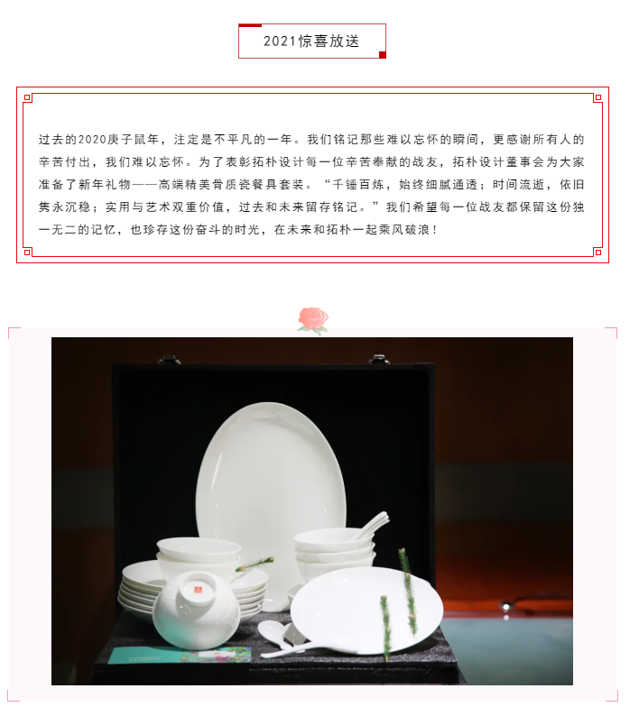 我司特為拓樸戰(zhàn)友定制了新春禮品——高端精美骨質瓷餐具套裝。