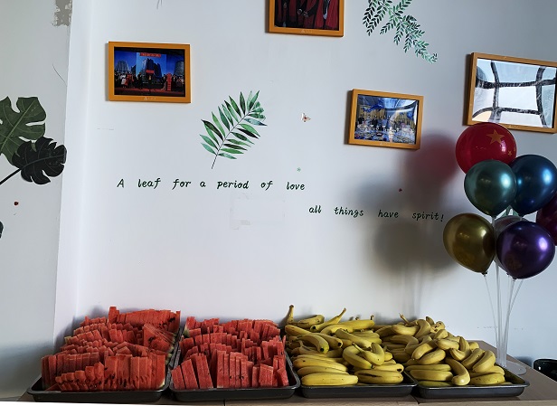 進(jìn)門抬頭便能看到五彩斑斕的氣球和小紅旗懸掛在空中,