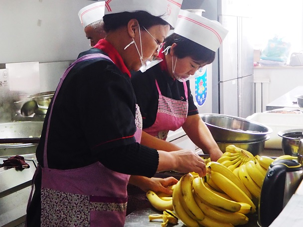 每人兩葷兩素一湯,自助吃到飽。最后來看一下食堂工作人員的風(fēng)采吧~