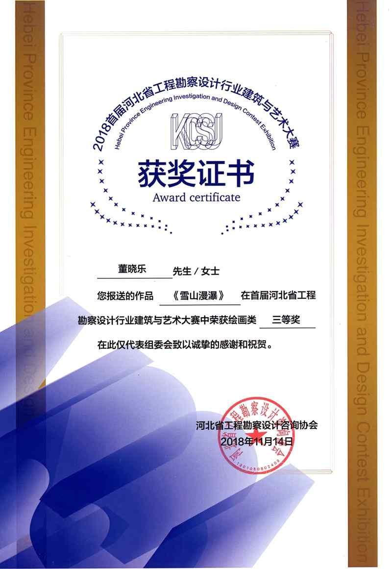 還記得今年8月份的首屆河北省勘察設計行業(yè)建筑與藝術大賽嗎?我公司積極參加,提交了數(shù)份優(yōu)秀作品。經(jīng)過各路大咖的激烈角逐,大賽組委會的層層選拔,我公司榮獲本屆大賽的優(yōu)秀組織獎,創(chuàng)研所董曉樂提交的兩幅作品分別獲得手機攝影類二等獎及繪畫作品類三等獎。
