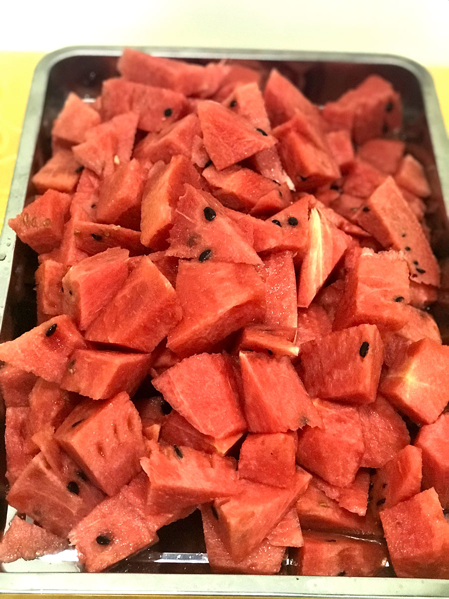 水果去皮又去籽,主食一上場,滿廊都是飯香---四菜一湯